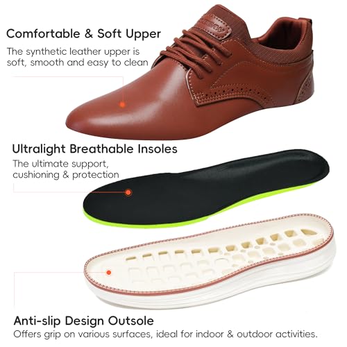 • Lightweight Casual Leather Upper: The upper part of Mens dress shoes are made with PU leather material, which is casual design and can keep the feet dry and comfortable, can effectively dissipate heat and prevent your feet from getting stuffy or sweaty and keep them cool and dry. Lightweight design reduce the burden on the feet and making walking easier.