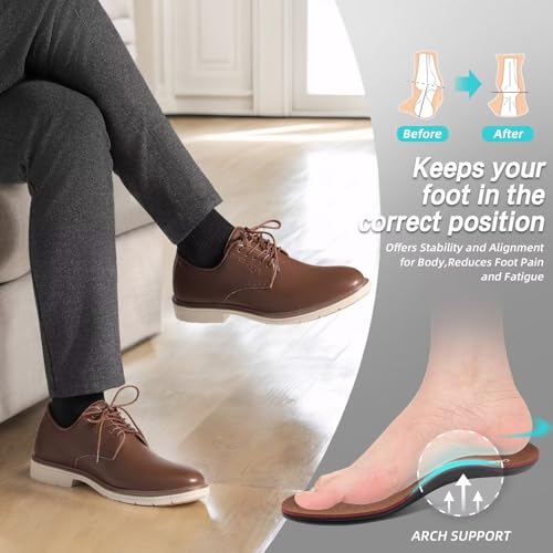 More information about Orthopedic Business Leather Dress Shoes: Cushion Arch Support Flat Feet Formal Plain Toe Office Work Patent Tuxedo Oxfords, Soft Plantar Fasciitis Diabetic Casual Fashion Sneakers Brown Size 9