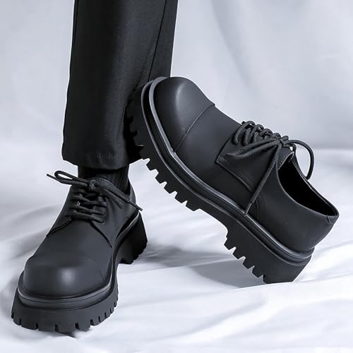 Men's Leather Lace-Up Lug Sole Platform Oxfords Shoes,Fashion Round Toe Non-Slip Oxford Derby Shoes Classic Work Office Business Dress Shoes 6