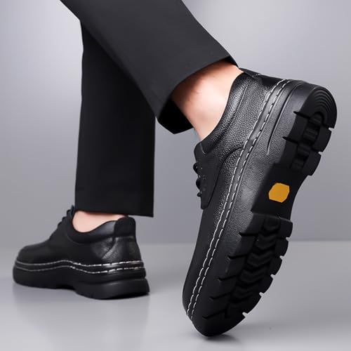 More information about Men's Genuine Leather Platform Chunky Heel Oxfords Comfort Round Toe Lace Up Anti-Slip Lug Sole Business Formal Dress Shoes Classic Handmade Fur Lining Office Work Shoes
