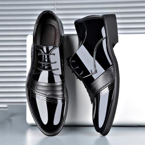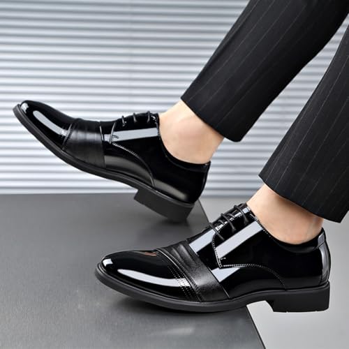 Mens Modern Patent Leather Lace Up Dress Oxford Shoes Classic Tuxedo Low Top Loafers for Business Wedding Formal Derby Shoes 6