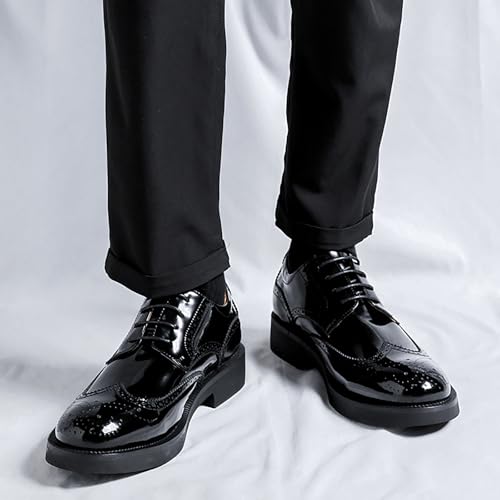Men's Black Patent Leather Wingtip Brogue Oxfords Classic Lace Up Low Top Derby Shoes - for Office Business & Dress Occasions 6