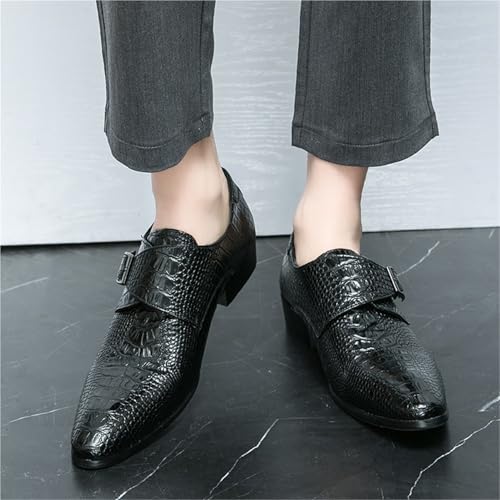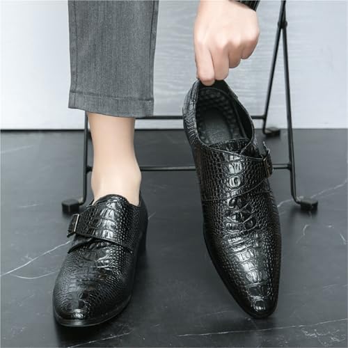 Oxford Shoes for Men Slip On Pointed Burnished Toe Faux Leather Crocodile Print Monk Strap Anti-Slip Slip Resistant Rubber Sole Working 6