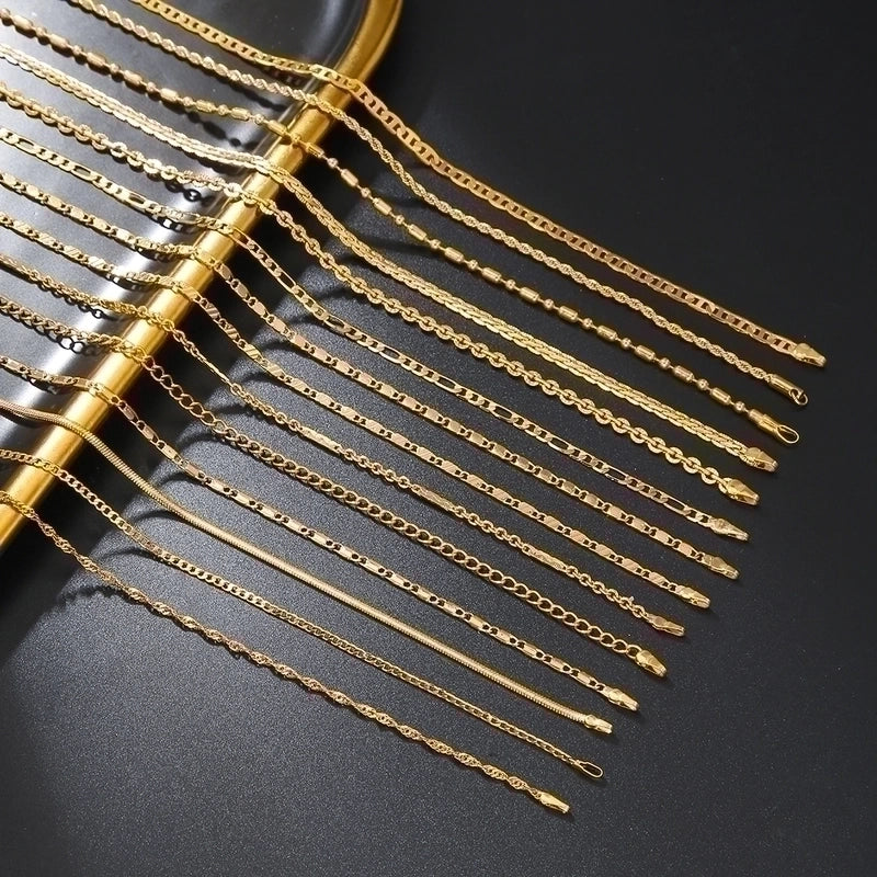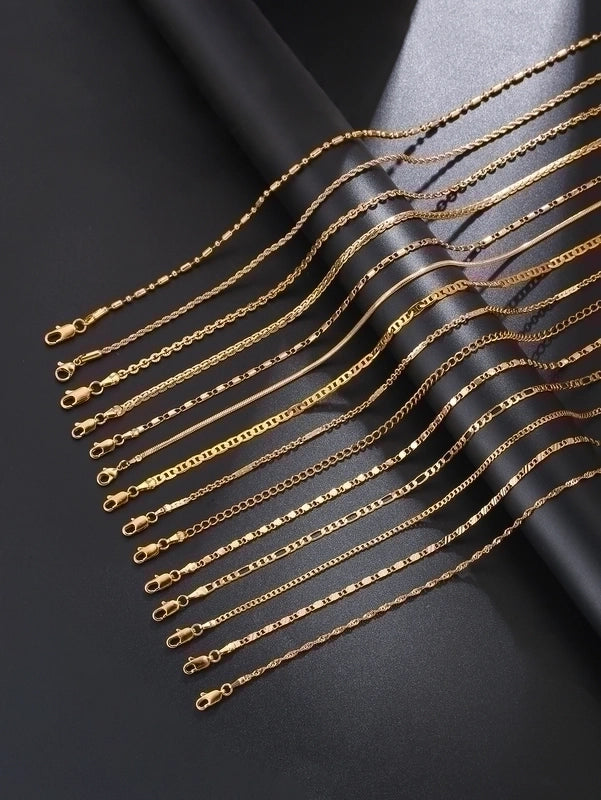 Vintage Style Solid Color Stainless Steel 14K Gold Plated Plating Pendant Necklace 18