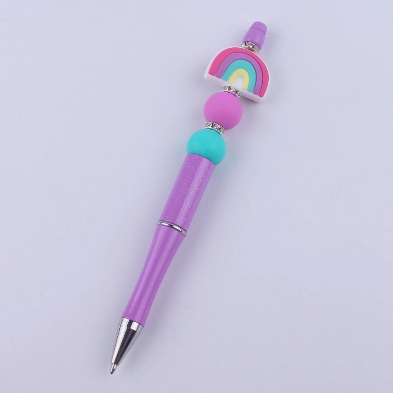 New Beaded Pen Spot Diy Creative Handmade Rainbow Silicone Teether Beads Beaded Pen Color Plastic Writing Pen 10