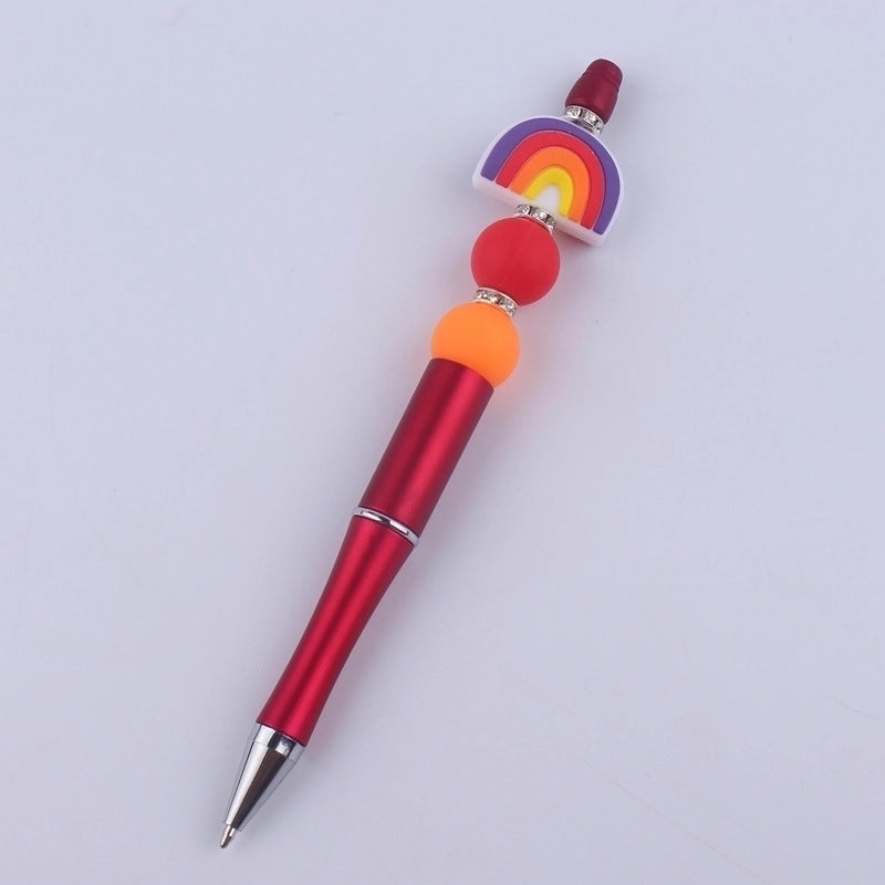 New Beaded Pen Spot Diy Creative Handmade Rainbow Silicone Teether Beads Beaded Pen Color Plastic Writing Pen 1