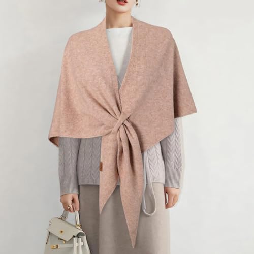 Women's Solid Color Shawl, Knitted Sweater Shawls, Knotted Cardigan Cape, Soft Triangle Shawl Wrap Poncho for Travel 4