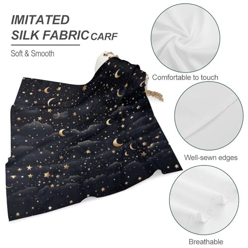 Stars And Moon 18 Inches Satin Head Scarf Lightweight Silk Hair Scarves Soft Silk Head Scarf for Women Large Satin Bandanas Square Headscarf Fashion Headband Neckerchief Neck Scarves Gift 1