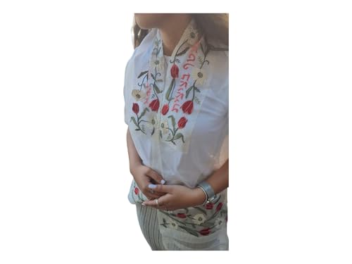 • Elegant Floral Design & Hebrew Blessing: Adorned with a beautiful, vibrant floral pattern and an embroidered Atarah (collar) featuring the traditional Hebrew blessing: "Who sanctifies us with His commandments and commanded us regarding the commandment of the tzitzit."