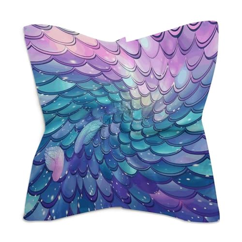 Water Lily Mermaid Scales Silk Scarf Fashion Satin Head Scarf Lightweight Head Scarves for Neck Silk Scarves for Women Men Boho Hair Wrap Sleeping Kerchief Bandanas Pocket Square 25" X 25" 1