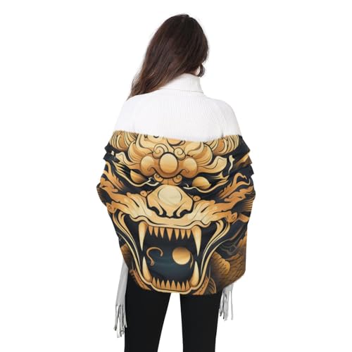 HOT ! Women's Scarf, Faux Pashmina Soft Lightweight Shawl Wrap, Fashion Scarves with Oriental Golden Dragon Print