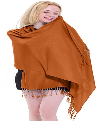 HOT ! CJ Apparel Persimmon Orange Burnt Orange Solid Color Tassels Design Nepalese Shawl Seconds Scarf Wrap Stole Throw Head Wrap Pashmina Hand Made in Nepal New