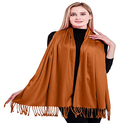 CJ Apparel Persimmon Orange Burnt Orange Solid Color Tassels Design Nepalese Shawl Seconds Scarf Wrap Stole Throw Head Wrap Pashmina Hand Made in Nepal New 2