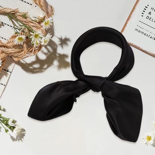 CREATCABIN Black Silk Feeling Scarf Soft Silky Square Satin Scarf Wrap Neck Head Scarves Sleeping Hair Protect Coverage Head Neckerchief for Women Travel Lightweight Costume Accessaries Gift 19.7in 1