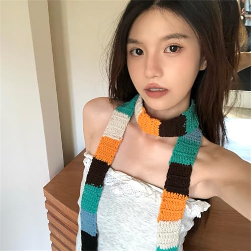 More information about Contrast Color Striped Scarf Aesthetic Knitted Narrow Women's Scarves Decoration Neck Warmer Long Skinny Neckerchief