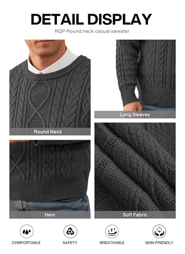 RQP Mens Crewneck Sweater Cable Knit Sweater Classic Fisherman Pullover Sweater 3
