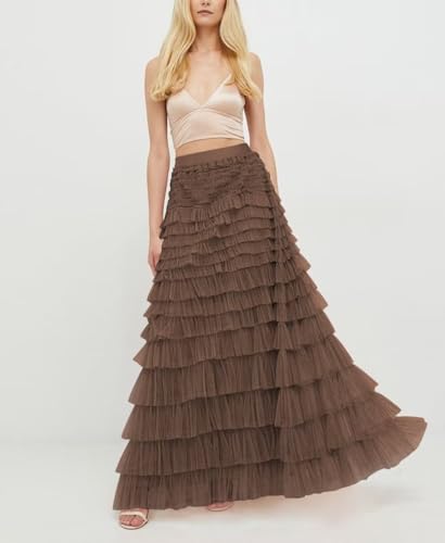 More information about Women's Long Maxi Ruffled Tiered Tulle Skirts Elastic Waist A-Line Layered Mesh Tutu Cake Skirt Petticoat