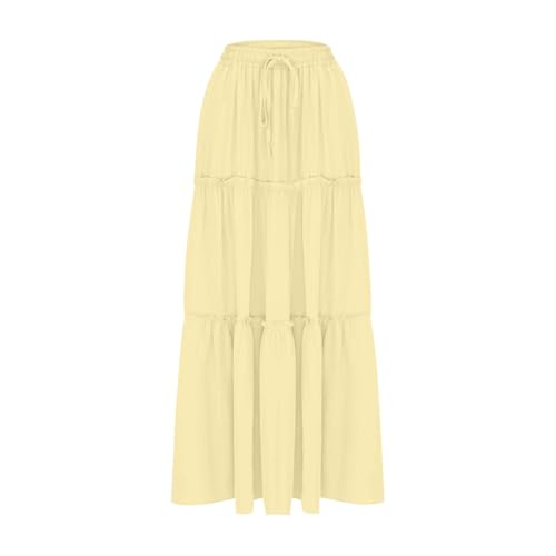 HOT ! Lmdudan Pleated Long Skirts for Women Casual Elastic High Waisted Skirts A-Line Flowy Swing Skirt with Pockets 2025 Fashion