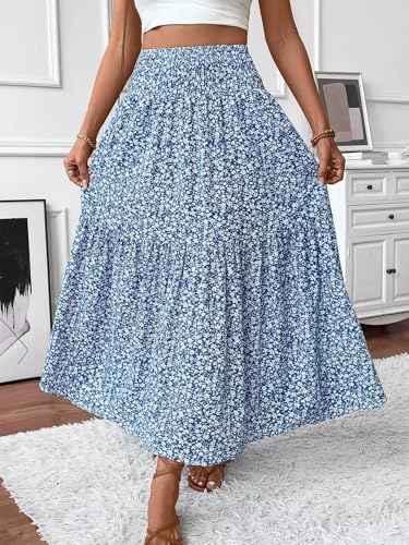Women's Boho Floral Maxi Skirts 2025 Casual Flowy Swing Pleated A Line Weekend Beach Long Skirt 2