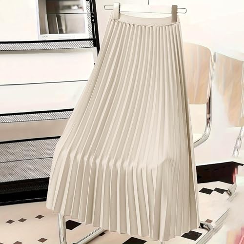 HOT ! Women High Waisted A Line Maxi Pleated Skirts Office Work Elegant Basic Long Skirts Lightweight Solid Flowy Skirt