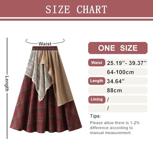 More information about Womens Casual Pleated Skirt Asymmetrical Plaid Skirts Elastic High Waist Lace Stitching Skirt Loose for Prom Party