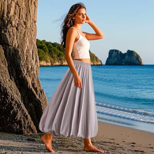 Women's Bubble Long Skirt, Elastic Waist A-Line Long Pleated Puffy Hem Y2k Casual Summer Skirts 4