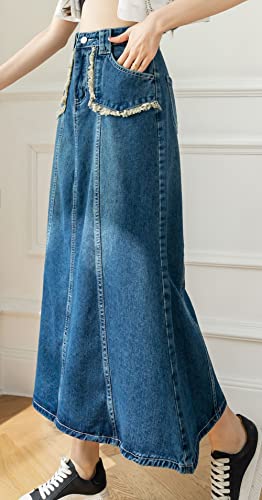CHARTOU Women's Retro High Waist Long Denim A Line Maxi Skirt with Pockets 6