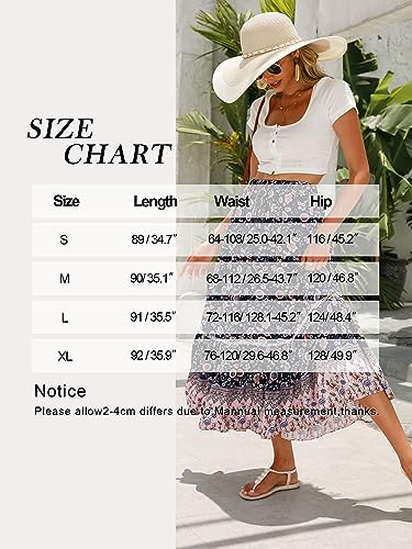 Ezcosplay Women Long Skirts Boho Floral Elastic High Waist Flowy Beach A Line Maxi Skirt 6