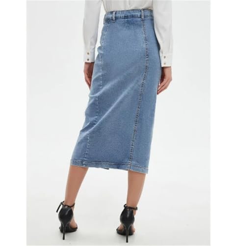 HOT ! Women's High Waist Light Blue Denim Midi Skirt American Retro Style Button Front Jean Skirt for Everyday Outfits