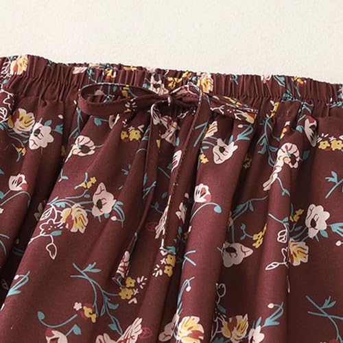 More information about Women's Boho Floral Skirts Casual Soft Drawstring Elastic High Waisted Skirt Trendy Pleated Midi Skirts with Pockets