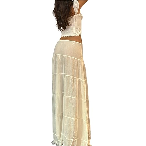 Women´s Long Skirts Lace Hem Tie-Up Low Waist Skirts Spring Summer Fashion Casual Skirts 5
