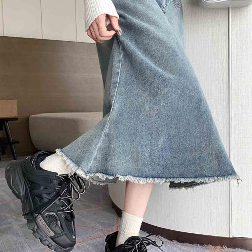 Retro Denim Skirt, Long Skirt, high Waisted, Casual A-line Skirt, Harajuku Denim Large Swing Skirt 6