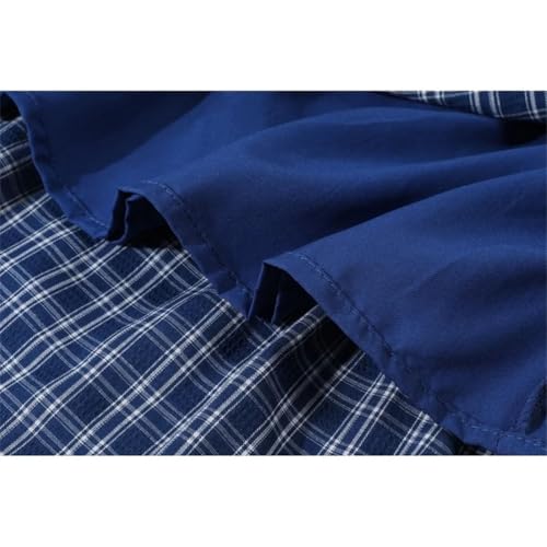 Women Spliced Plaid Skirt Vintage Loose Elastic Waist A Line Folds Fashion Long Skirts 6