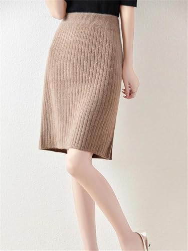 Women's Fall/Winter Knitted Skirt 100% Merino Wool Mid-Length Loose Straight Skirt Gray M 7