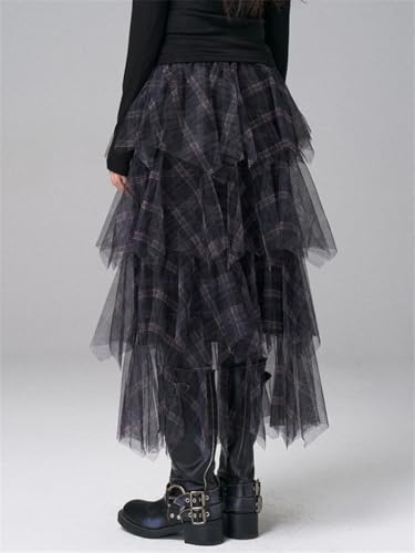 More information about Women Elastic High Waist Tulle Black Plaid Irregular Layers Mesh Cake Midi Skirt Loose Festival Skirts