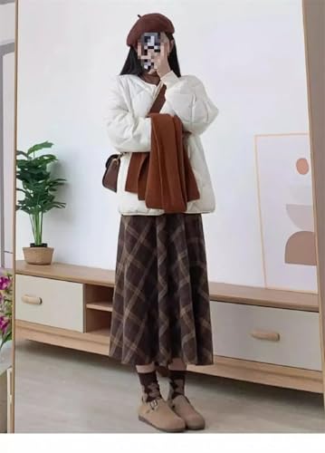 More information about Women's Vintage High-Waisted, Plaid, Loose-Fitting, Hip-Hugging Wool Midi A-Line Skirt