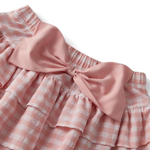 Women Y2k Plaid Pleated Mini Skirt Bow Ruffle Sweet Layered Short Skirt Gingham Short Lolita Fairy Princess Skirts 7