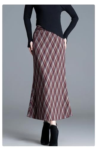 More information about Women's Korean-Style High-Waisted Slim-Fit Midi Knit Plaid Fishtail Skirt