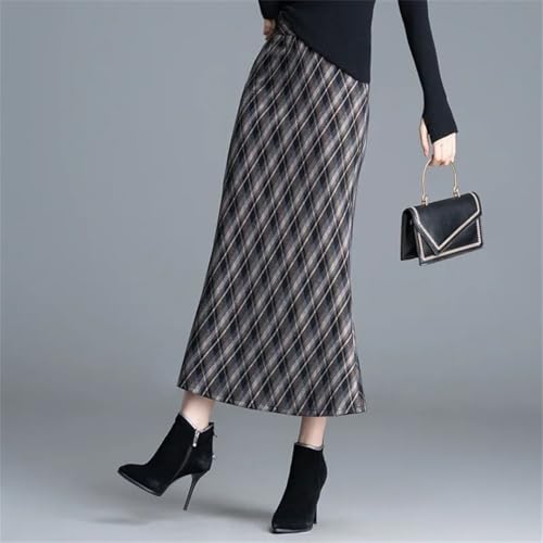 HOT ! Women's Korean-Style High-Waisted Slim-Fit Midi Knit Plaid Fishtail Skirt