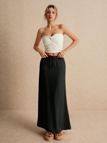 Women's Flowy Trendy Skirt Casual Solid Low Waist Long Skirt 5