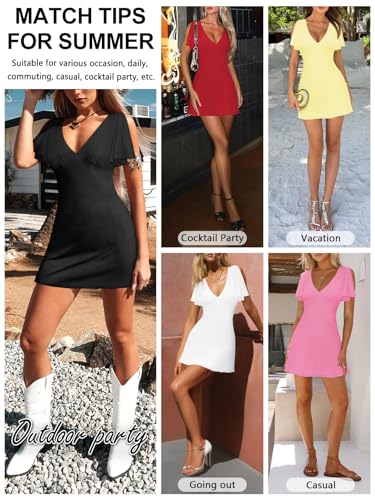 • 【Occasions】Cute and sexy mini bodycon dress, make your wardrobe more complete. Suitable for leisure, daily life, work, beach, wedding, date night and other occasions in summer, the women's v-neck mini dress design is fashionable and comfortable to wear, allowing you to always exude charming charm.