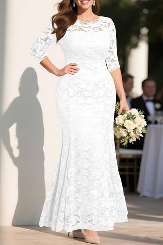 • 【Features】This elegant lace gown boasts a round neckline and a flattering mermaid silhouette. Floor-length and fully lined, it features delicate lace with a light texture and 3/4 sleeves. A hidden side zipper ensures easy wear. Perfect for formal occasions.