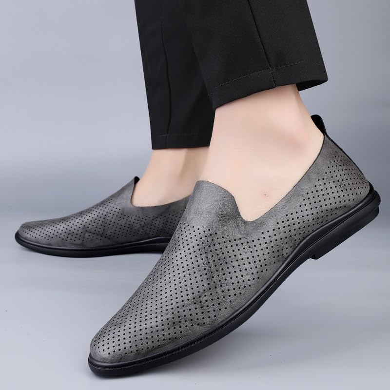HOT ! HOOENG Dress Oxford Shoes for Men Slip On Round Toe Faux Leather Breathable Shoes Low Top Non Slip Resistant Working(White Gray,7.5)