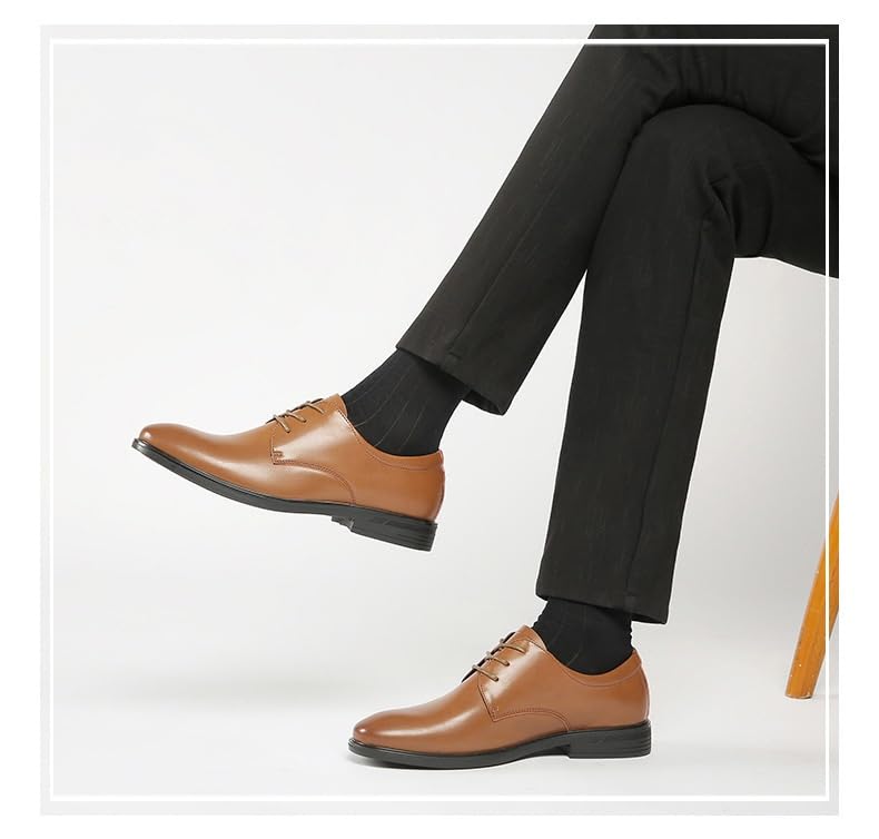 HOOENG Formal Dress Shoes for Men Lace Up Round Toe Vegan Leather Solid Color Derby Shoes Rubber Sole Resistant Non Slip Party(Color:Brown,Size:10) 6