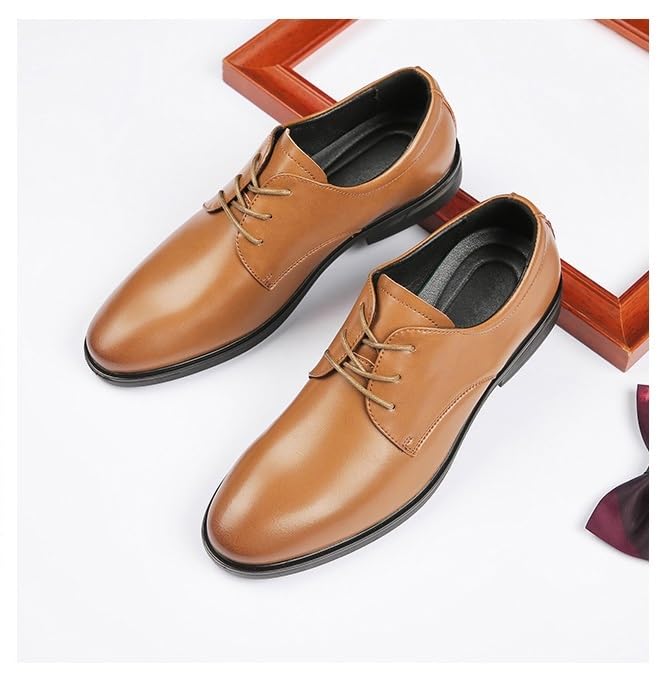 HOOENG Formal Dress Shoes for Men Lace Up Round Toe Vegan Leather Solid Color Derby Shoes Rubber Sole Resistant Non Slip Party(Color:Brown,Size:10) 7