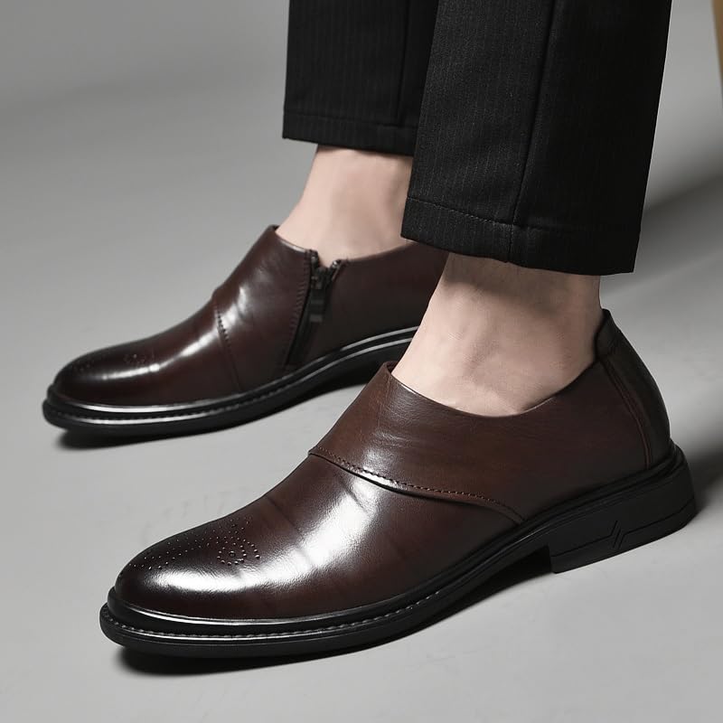 HOOENG Oxford Shoes for Men Slip On Round Burnished Toe Brogue Shoes Slip Resistant Rubber Sole Block Heel Non Slip Casual(Color:Brown,Size:7.5) 4