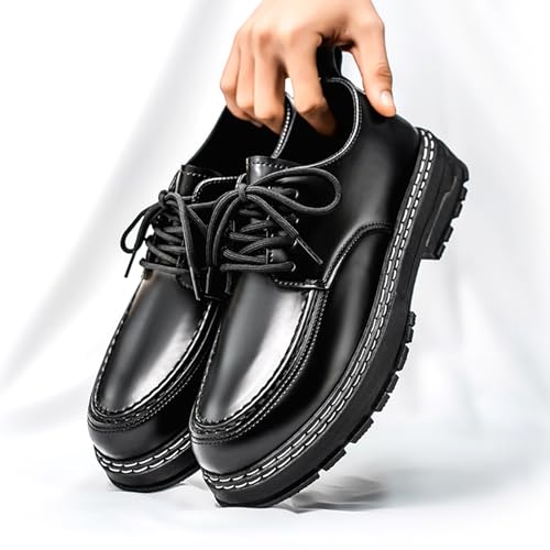 Men's Retro Platform Dress Shoes Leather Lace Up Business Oxfords Casual Derby Men Shoes 6