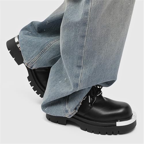 Men's Leather Lace Up Chunky Platform Dress Oxfords Shoes with Metal Plate Non Slip Heightening Round Toe Comfortable Derby Shoes for Formal Office Party Wedding Business 7
