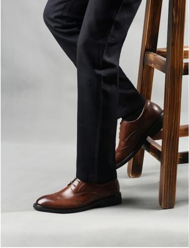 More information about Mens Brogue Oxford Leather Dress Shoes British Style Business Casual Pointed Toe Lace-Up Wedding Formal Footwear(Brown,10)
