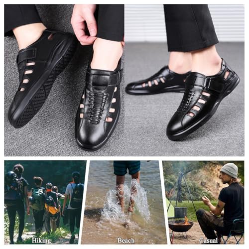 Men's Sport Sandals Leather Adjustable Lightweight Breathable Comfort Walking Sandals for Men Casual Water Beach Hiking Camping 6